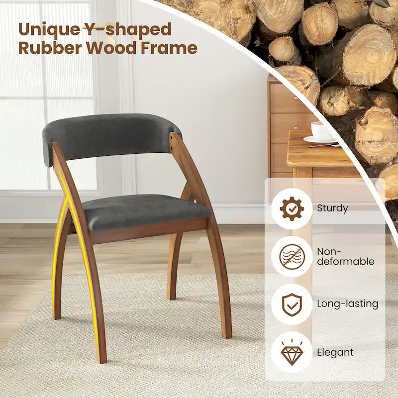 Sublimez votre salle à manger avec cet ensemble de 4 chaises ! Le dossier incliné de 102 cm de nos chaises est conçu pour favoriser une posture détendue pendant vos repas. Il épouse la courbure naturelle de votre colonne vertébrale, offrant un soutien optimal et réduisant les tensions. Dotées d'une assise et d'un dossier rembourrés, ces chaises en bois vous garantissent un confort optimal pour savourer vos repas. Le rembourrage en polyester résistant à l'usure apporte une touche de luxe et assure une grande durabilité. La structure unique en bois d'hévéa en forme de Y de nos chaises ajoute une note de sophistication tout en assurant un soutien robuste.