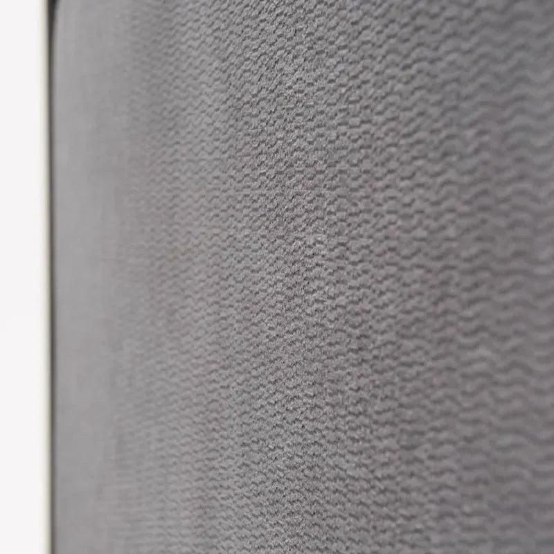 - La tête de lit rembourrée en tissu gris ajoute une touche douce et confortable au design.