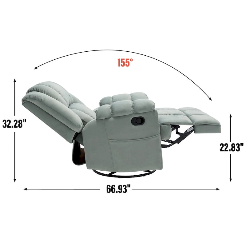 Fauteuil inclinable manuel avec bascule et pivotant en tissu pour salon